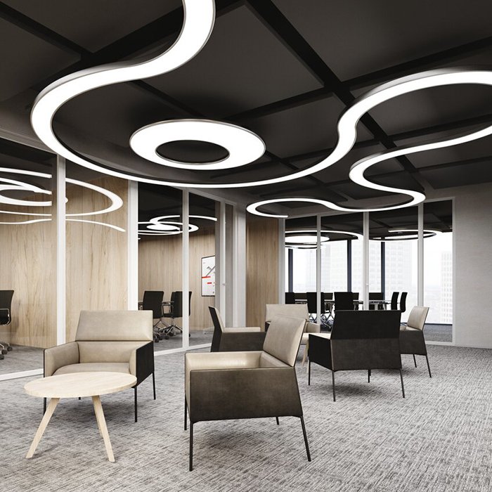 Die flexiblen Module ermöglichen ein schnelles und einfaches Zusammenstellen abgehängter Beleuchtungssysteme polygonaler Formen. Entwerfen können Sie die Leuchten selbst, und zwar in kompatiblen Programmen mithilfe der beiliegenden 2D und BIM 3D CAD-Dateien, die die Visualisierung und Planung vereinfachen. Wenn Sie ein professionelles Vorgehen bevorzugen, können Sie den Service Erstellen einer Visualisierung von KLUŚ LED-Leuchten nutzen. Unsere Projektabteilung fragt bei Ihnen die erforderlichen Unterlagen an und erstellt eine Visualisierung der Beleuchtung einschließlich Unterlagen für eine eventuelle anschließende Fertigung der Leuchten entsprechend Ihren Anforderungen.