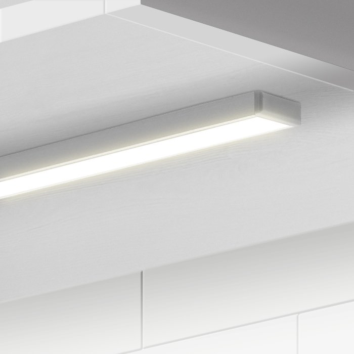 Die lineare LED-Küchenunterbauleuchte mit der Bezeichnung LINEA bietet eine erstklassige gleichmäßige Beleuchtung der Küchenarbeitsplatte und ein kompaktes minimalistisches Design, das zur Gesamtästhetik des Interieurs beiträgt. Dank ihres linearen Designs und einer Lichtbreite von 120° eignet sie sich für eine wandanliegende Montage an der Unterseite der oberen Schränkchen einer Küchenzeile etwa in 1/3 der Tiefe von der Sichtseite aus gesehen. Eine derart realisierte lineare Unterbauleuchte sorgt für eine effektive Beleuchtung der Arbeitsplatte ohne Blendung und unerwünschte Schatten.