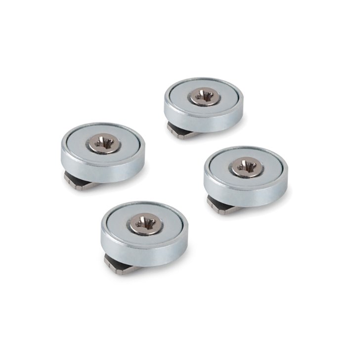 - Satz von 4 Magnethaltern für ferromagnetische Metalloberflächen.
