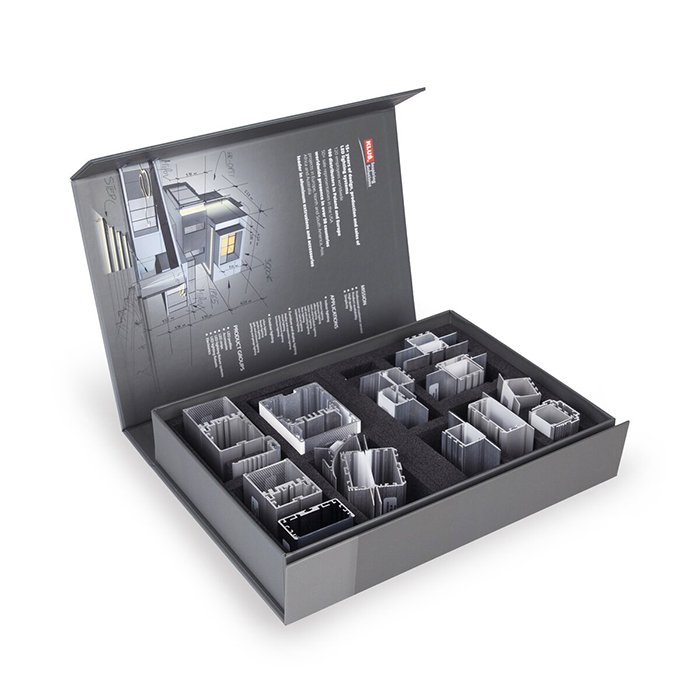 Die Präsentationsbox KLUŚ M-L ist ein professionelles Tool für eine effektive Präsentation von LED-Produkten, vor allem von ALU-Profilen und Abdeckungen unterschiedlicher Größen, Formen und Abmessungen. Diese Box ermöglicht das praktische Vorführen der Eigenschaften, des Designs wie auch der technischen Ausführung einzelner Komponenten.