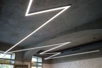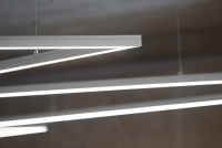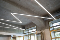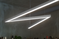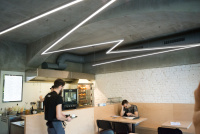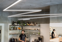 Dieses Bistro wird mittels eines Profils in Blitzform beleuchtet, wobei das LED-ALU-Deckenprofil KLUS 3035 verwendet wurde. Zu seinen Vorteilen gehören die Möglichkeit des Auf- und Abhängens von einer Decke (in horizontaler Richtung) als auch das Aufsetzen auf eine Oberfläche (in horizontaler oder vertikaler Richtung) sowie der Hohlraum für eine verdeckte Führung der Versorgungskabel und Stromleitungen.