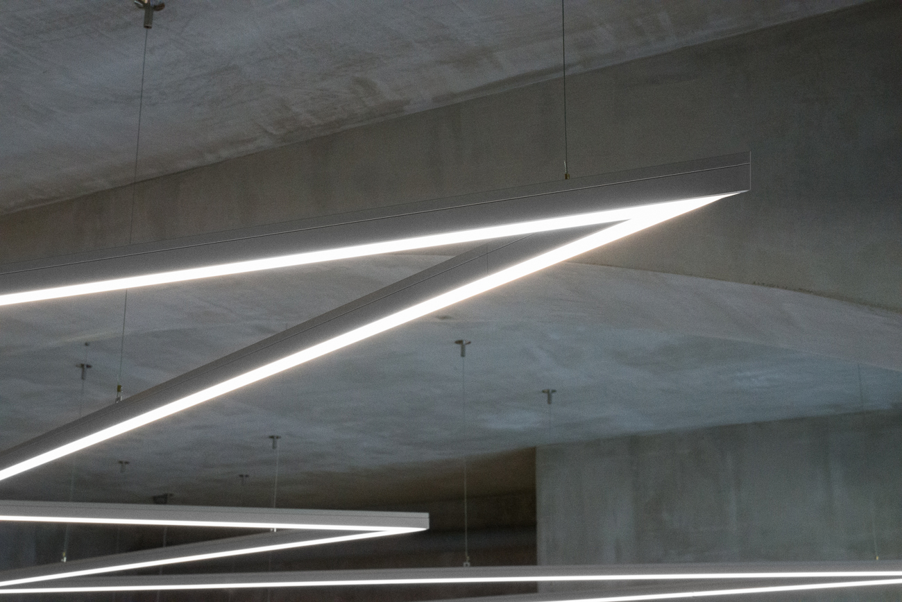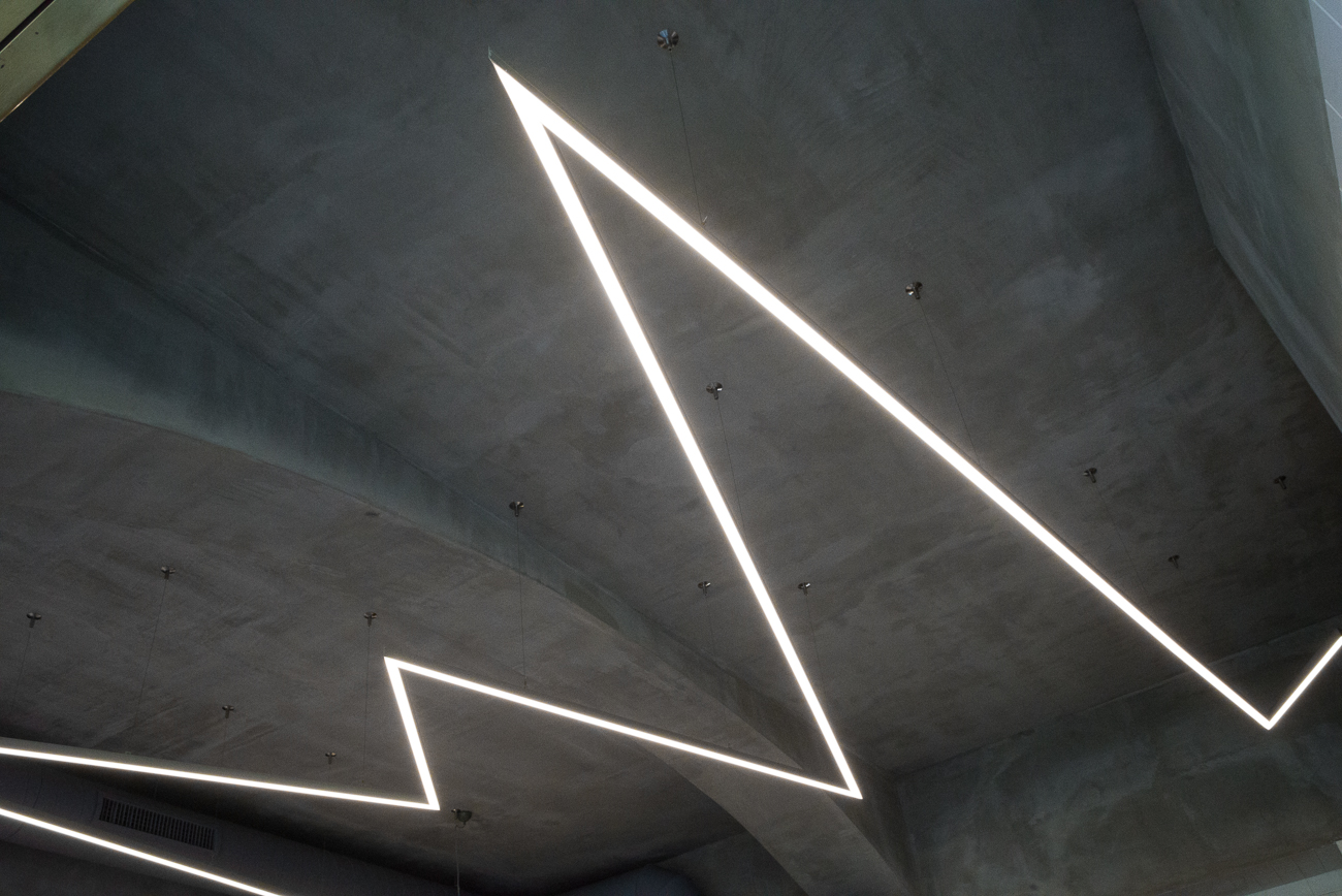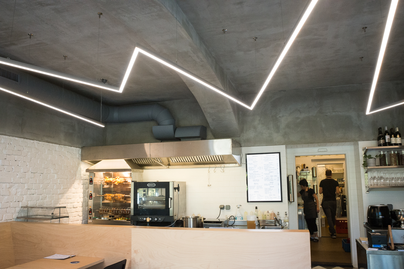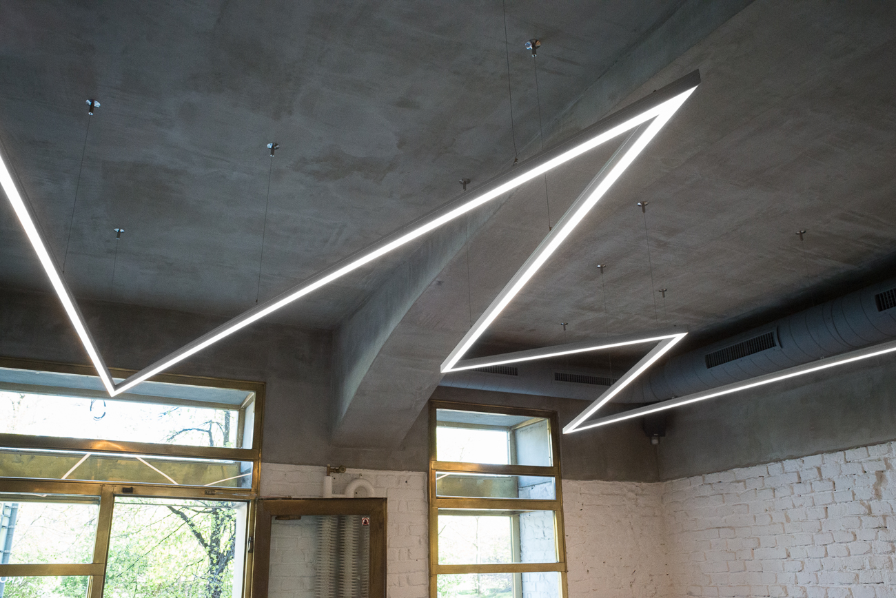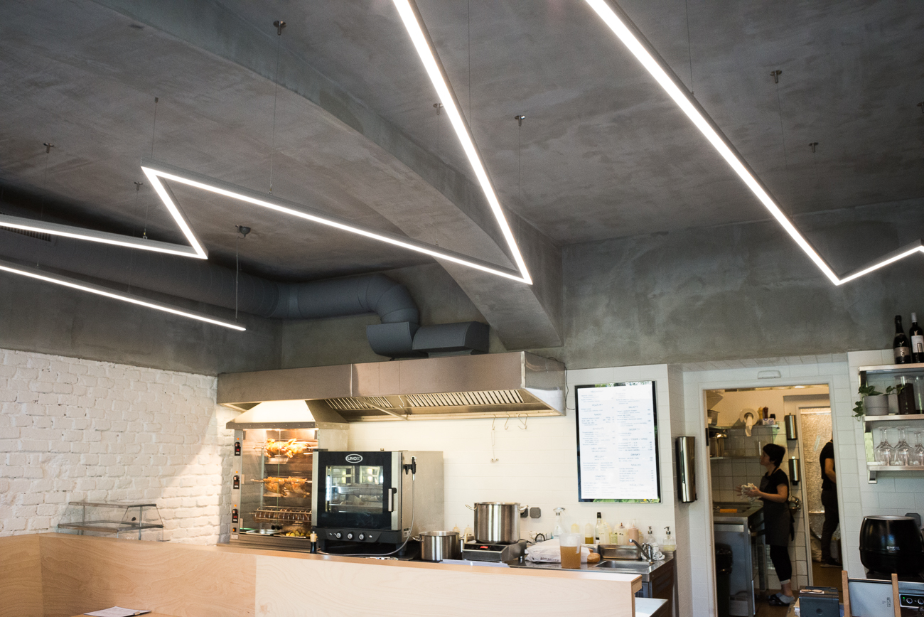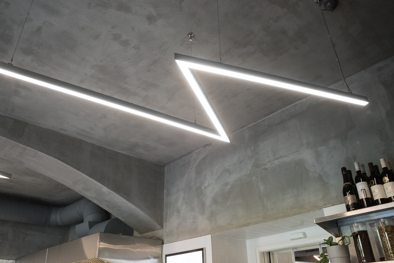 Dieses Bistro wird mittels eines Profils in Blitzform beleuchtet, wobei das LED-ALU-Deckenprofil KLUS 3035 verwendet wurde. Zu seinen Vorteilen gehören die Möglichkeit des Auf- und Abhängens von einer Decke (in horizontaler Richtung) als auch das Aufsetzen auf eine Oberfläche (in horizontaler oder vertikaler Richtung) sowie der Hohlraum für eine verdeckte Führung der Versorgungskabel und Stromleitungen.