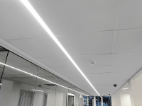 Bei diesem Referenzprojekt kam für die Beleuchtung von Bürogängen das LED-Profil KLUŚ GIZA-LL zum Einsatz, welches für eine aufgesetzte, hängende oder eingebaute Montage geeignet ist. Hier wurde ein modernes und funktionstüchtiges Konzept gewählt, dessen Hauptprinzip eine direkt in Kassettendecken integrierte lineare Leuchte ist. Dank dieses Ansatzes lässt sich eine saubere, minimalistische Optik ohne störende Elemente und gleichzeitig eine gleichmäßige und ausreichend intensive Beleuchtung schaffen. Die linearen Leuchten unterstützen die Orientierung im Raum, sorgen für eine optische Verlängerung der Gänge und verleihen dem gesamten Interieur Leichtigkeit und einen modernen Charakter. Ergebnis ist die Kombination einer praktischen Lösung mit einem ästhetischen Effekt – die Büros wirken repräsentativ, die Gänge sind angenehm beleuchtet und der gesamte Bereich bietet komfortable Bedingungen für die tägliche Arbeit.