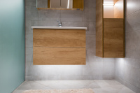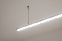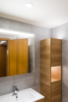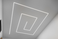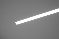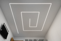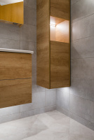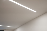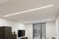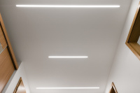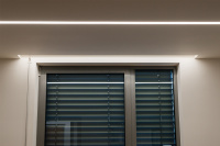 Der Flur wird mit dem LED-Unterputzprofil KLUŚ KOZEL beleuchtet. In weiteren Räumen, wie im Wohn- und im Schlafzimmer, wurden in der abgehängten Trockenbaudecke die dünnere LED-Leiste KLUŚ KOZEL-10 und das breitere LED-Profil KLUŚ KOZEL-50 verwendet. Die LED -Eckleiste mit einem Abstrahlwinkel von 45° KLUŚ 45-16 kam nicht nur für die Beleuchtung der Küchenzeile, der Regale und Schränkchen, sondern dank der möglichen Schutzart bis IP67 auch in der Dusche zum Einsatz.