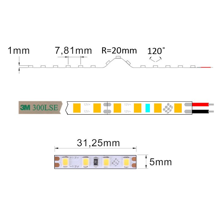 Ergänzende technische Eigenschaften des weißen 12V MINI LED-Streifens SC12128