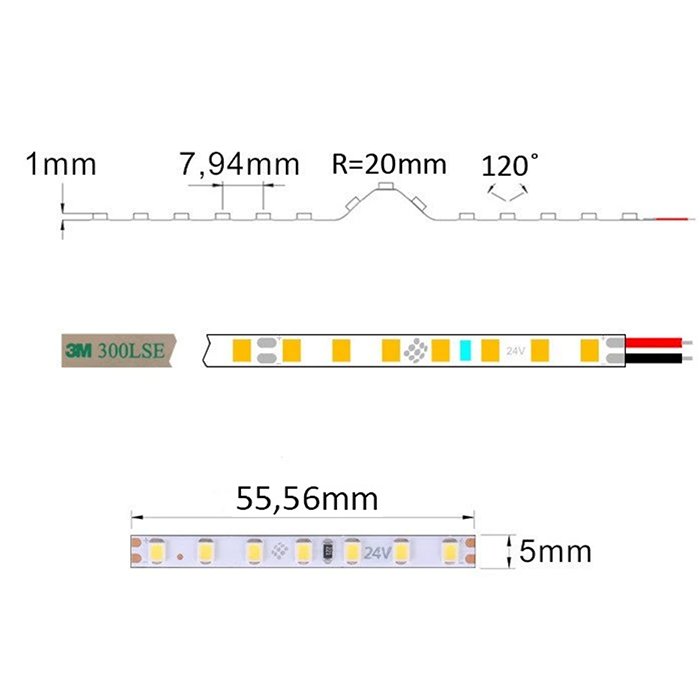 Ergänzende technische Eigenschaften des weißen 24V MINI LED-Streifens SC24126