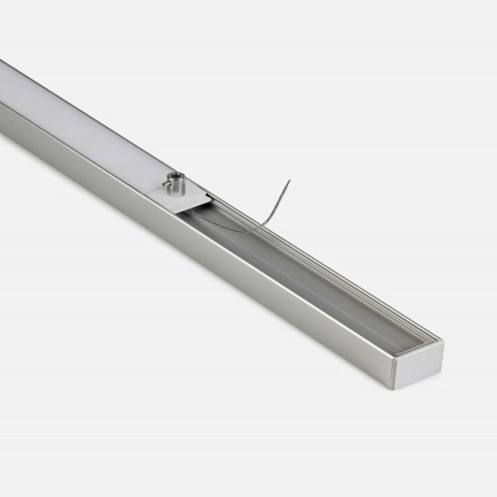 Ein Vorteil des Befestigungselements für ALU-Profile OS22-LIN-Z ist die optionale Möglichkeit (die Sie nutzen können, aber nicht müssen) einer einkanaligen Stromversorgung mit DC 12V/24V. Dank dessen können Sie einen in einem Alu-Profil installierten LED-Streifen über ein #tablink#montaz#Stahlseil## versorgen. Diese Art der Installation eliminiert komplett den Bedarf eines eigenständigen Stromversorgungskabels. Das Aufhängen samt Stromversorgung bietet Freiheit beim Designen von Leuchten und ihrer Platzierung im Raum, ohne dass der ästhetische Eindruck durch Versorgungskabel beeinträchtigt wäre. Sie können auch Aufhängeelemente für Decken und Wände für die Fertigung von Leuchten verwenden:
