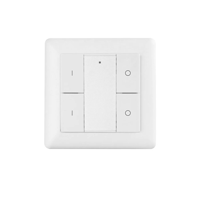 Der ZigBee Wandschalter mit vier Tasten und der Bezeichnung SR-ZG9001K4-DIM2 stellt eine modulare Lösung für das Steuern einfarbiger LED-Streifen, Leuchten und elektronischer Bauteile mithilfe eines ZigBee 3.0 Steuersignals dar. Der ZigBee Wandtaster trägt mit ihren vielen Funktionen zu einem höheren Nutzerkomfort, zu einer höheren Flexibilität der Bedienung und zum Stromsparen bei.