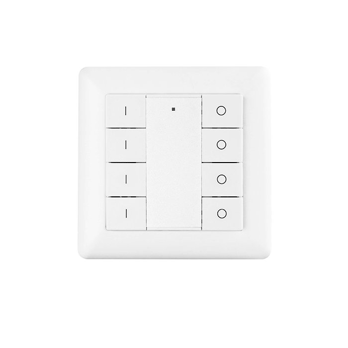 Der Wandschalter ZigBee für LED-Streifen und elektronische Bauteile SR-ZG9001K8-DIM mit acht Tasten wurde so entwickelt, dass sie auch in komplizierten Schaltszenarien im Rahmen des ZigBee Ökosystems eine technisch fortgeschrittene, stabile und zuverlässige Lösung bietet.